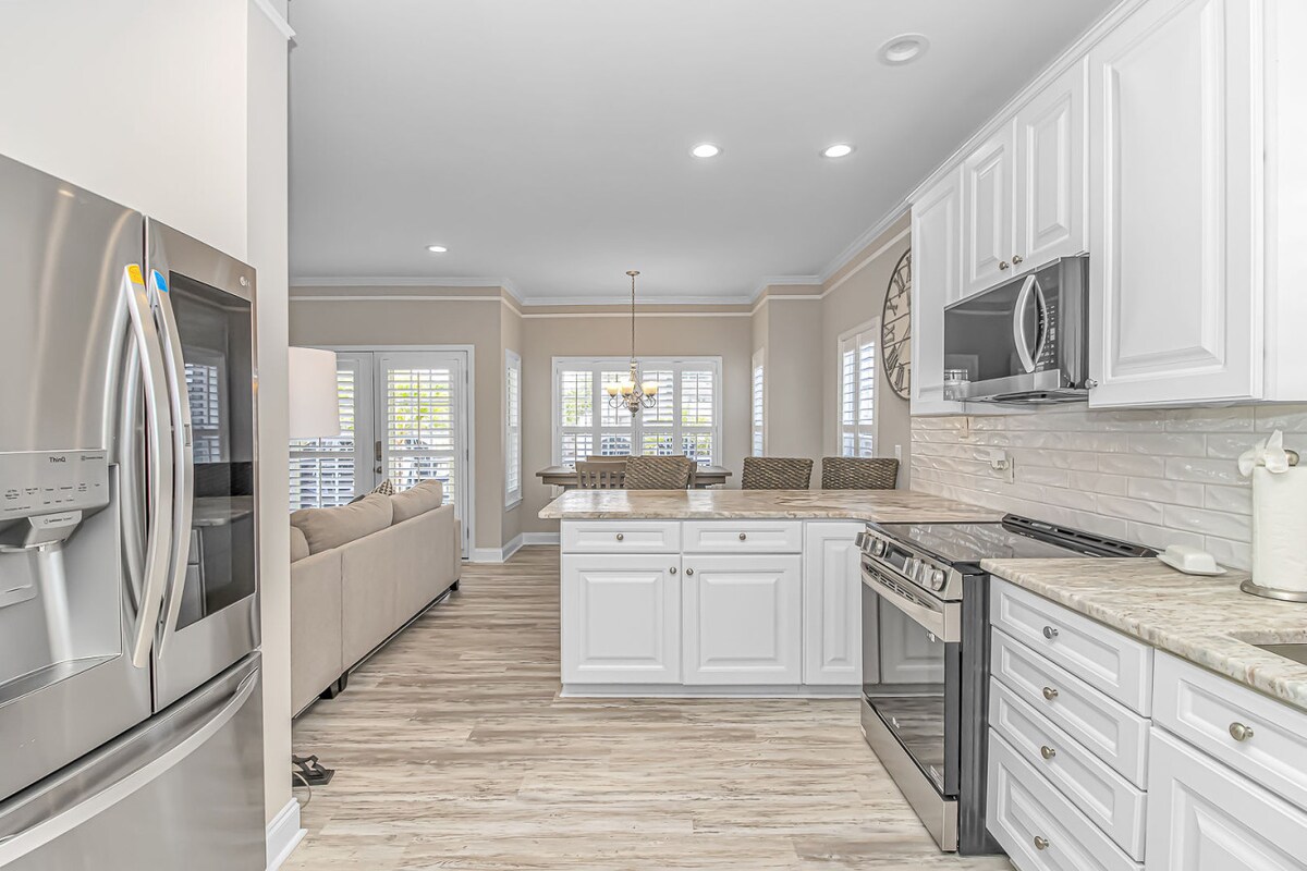 Üdv a The Snapperben! Ez a világos miniház Ocean Lakesben tökéletes barátoknak és családtagoknak. Pihenj a tágas szabadtéri területen, gyűlj össze a nyitott nappaliban és konyhában, és élvezd az Ocean Lakes csodálatos kényelmi szolgáltatásainak teljes körű használatát. Fedezd fel az üdülőhelyet vadonatúj, 4 személyes golfkocsinkkal, amelyet a szálláshelyen töltött időd során bérelhetsz! Akár 8 vendég is kényelmesen🐚 elfér 🐚 Tágas szabadtéri szórakozóhely 🐚 Golfkocsi bérelhető 🐚 Teljes konyha családi étkezésekhez 🐚 Állatbarát!