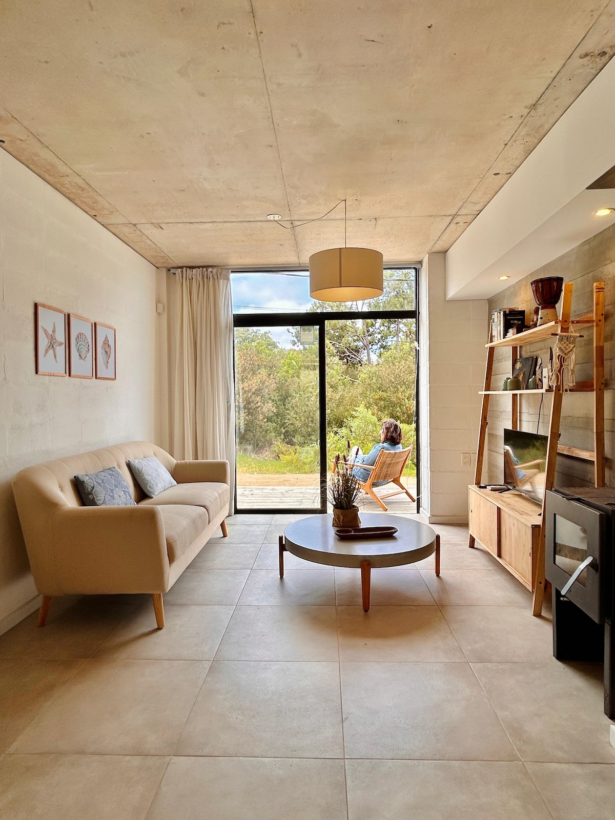 Designer beachfront cabin between Piriápolis and Punta del Este. Wake up to the sound of the ocean and step straight onto the sand. Perfect for a romantic or adventure escape. Cozy wood-burning stove, bonfire under the stars, and a fully equipped kitchen. Includes linens, towels, and amenities. A peaceful seaside retreat to relax and reconnect with nature. Near the cabin there's an abandoned complex, but there's a caretaker living there and it's very safe.