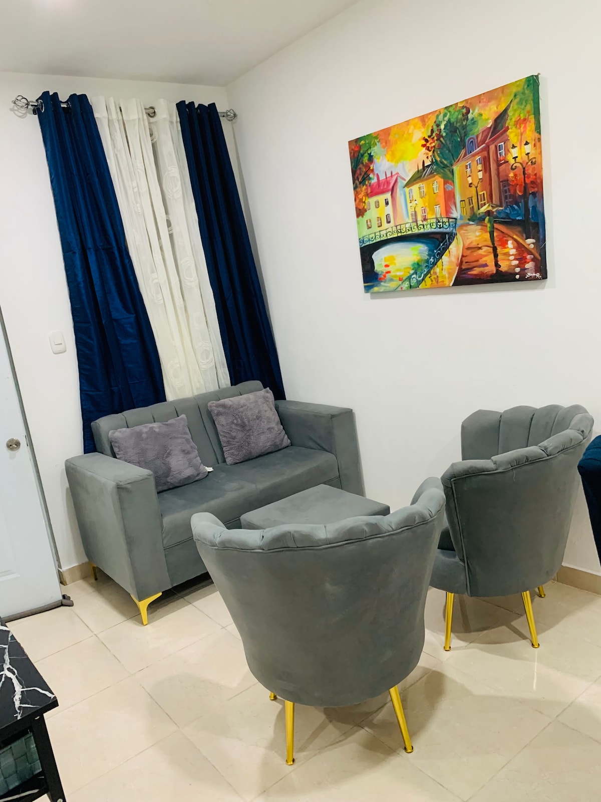 Pihenj ebben a csendes és elegáns térben. Frissesség és kivételes kilátás, ha csendes helyet keresel a családoddal való pihenéshez, ez az ideális hely. Ez a gyönyörű apartman a 3. szinten található, három hálószobából áll, mindegyik légkondicionálóval és intelligens ventilátorokkal, 2 fürdőszobával, teljesen felszerelt konyhával, 5 percre a Gregorio Luperon repülőtértől és 10 percre a Sosua strandtól és 15 percre Santa Fé-tól.