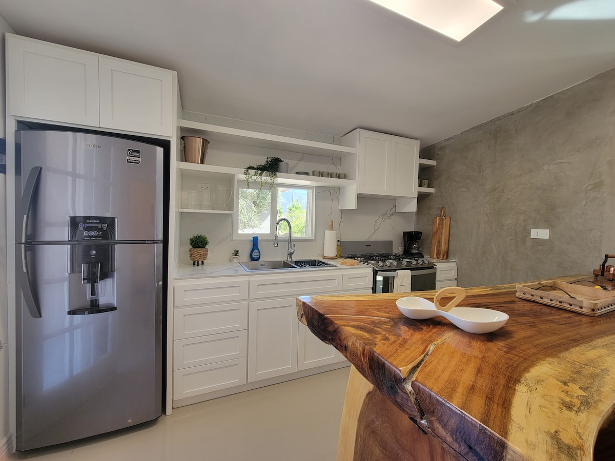 Ezt az egyedi casitát teljesen átalakították finom európai spanyol bájjal, elegáns, tágas konyhával, háromrészes fürdőszobával, romantikusan leterített baldachinos ággyal, luxus ágyneművel, fatüzelésű kandallóval, szökőkúttal és bisztróasztallal felszerelt kerti terasszal, saját tetőtéri palapával, teljes panorámás kilátással az óceánra, egyedi queen méretű ágyhintával és bárszékekkel, amelyek rövid távolságra vannak a lépcsőktől, amelyek a privát strandunkhoz vezetnek több mérföldnyi sétára, amikor a dagály alacsony!