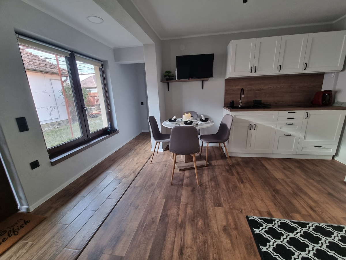 Ez a pihentető ingatlan percekre a várostól lélegzetelállító kilátást nyújt a hegyekre. Egy új lakóövezetben található, kilátással a Szekelyudvarhelyre, ahonnan panorámás kilátás nyílik egészen Sukóig. Élvezd a luxust és a kényelmet az egész családdal. Tapasztald meg a békés naplementéket egy gyönyörűen berendezett teraszon. A saját konyhád kényelmét élvezheted mindennel, amire szükséged van, kávét és teát, amikor megérkezel. Wifi díjmentesen, kiságy/etetőszék kérésre rendelkezésre áll. A szabadtéri fitnesz/park 3 perces sétával elérhető!!