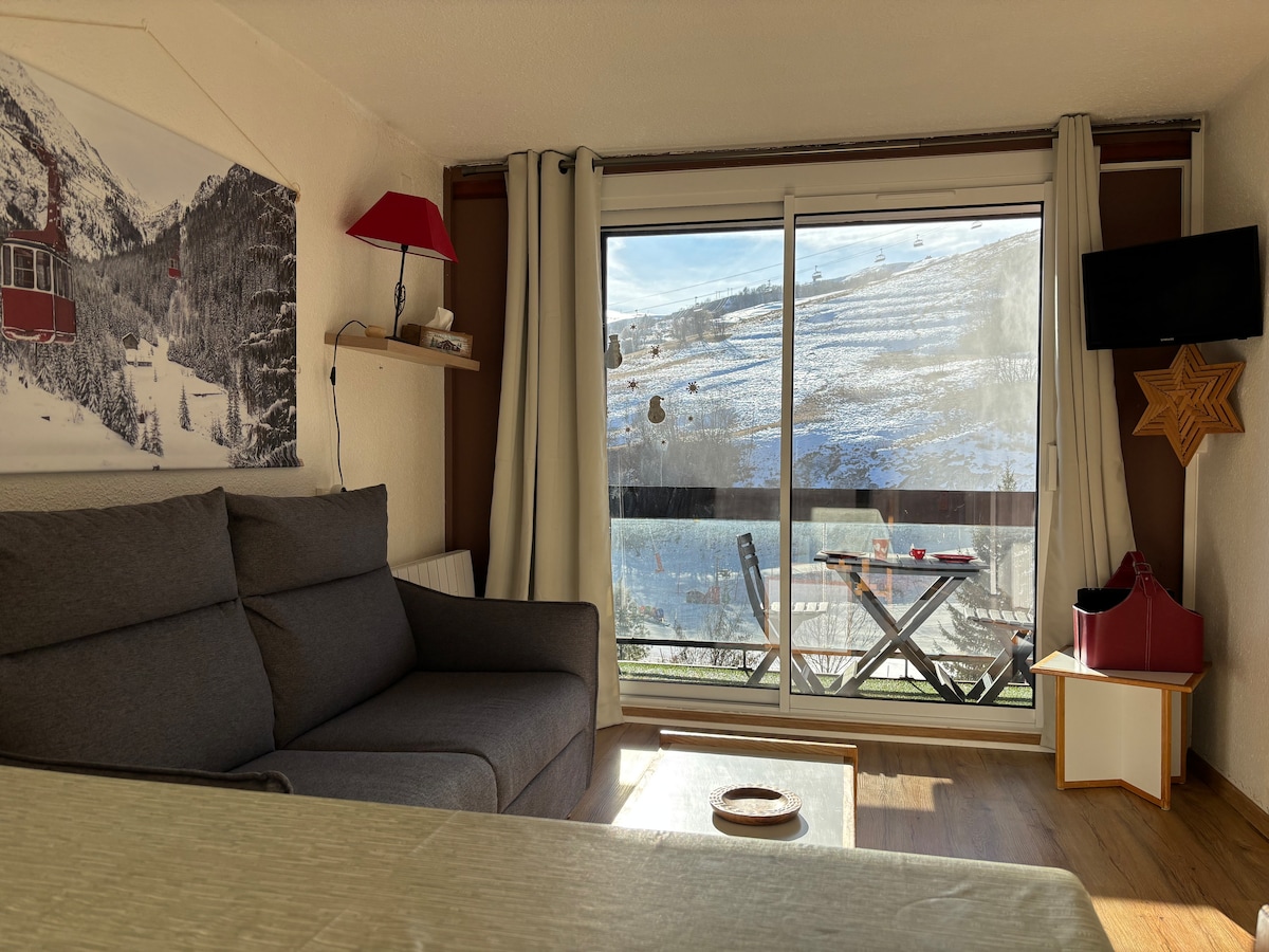 Hangulatos 28m²-es erkélyes kilátás • Les Sybelles • Síelés a lábad előtt