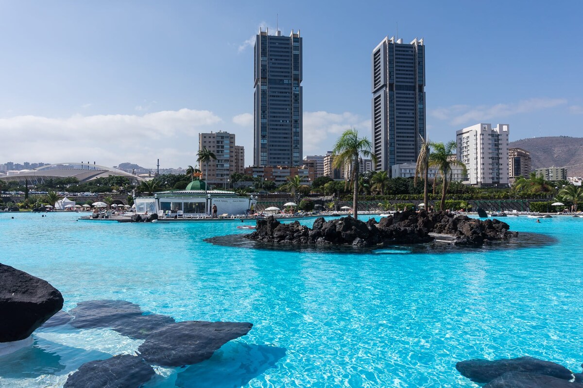 Lenyűgöző, közvetlen kilátás a tengerre a főváros legexkluzívabb területén található luxusépületben (1. TORONY). Belül EXKLUZÍV GARÁZS PLAZA található. ENGEDÉLY VV-38-4-0093153.WIFI private. Tökéletesen kommunikál az autópályákkal és a busz csomópontokkal. Nagyszerű nyaraláshoz vagy munkához. A Piscinas del Parque Marítimo 5 perces sétával elérhető. Gyönyörű előcsarnok WI-FI-VEL. 24 órás biztonsági szolgálat. 2 perces sétára a moziktól és a bevásárlóközpontoktól, valamint 12 perces autóútra a TF-North repülőtértől.