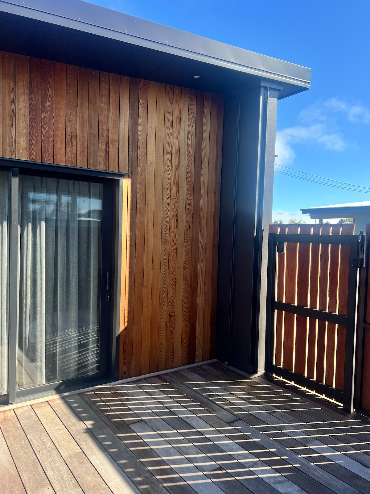 This brand new modern two bedroom cottage is perfect for relaxing. It has high quality fittings, fixtures and appliances, you will also be very comfortable year round with the heat pump. Entrance can be through the internal garage, great for winter months, or via the covered veranda, which happens to be perfect for morning coffee in the sun. The cottage boasts a beautiful bathroom with underfloor heating and two bedrooms. It is located in a quiet area, walking distance to town.