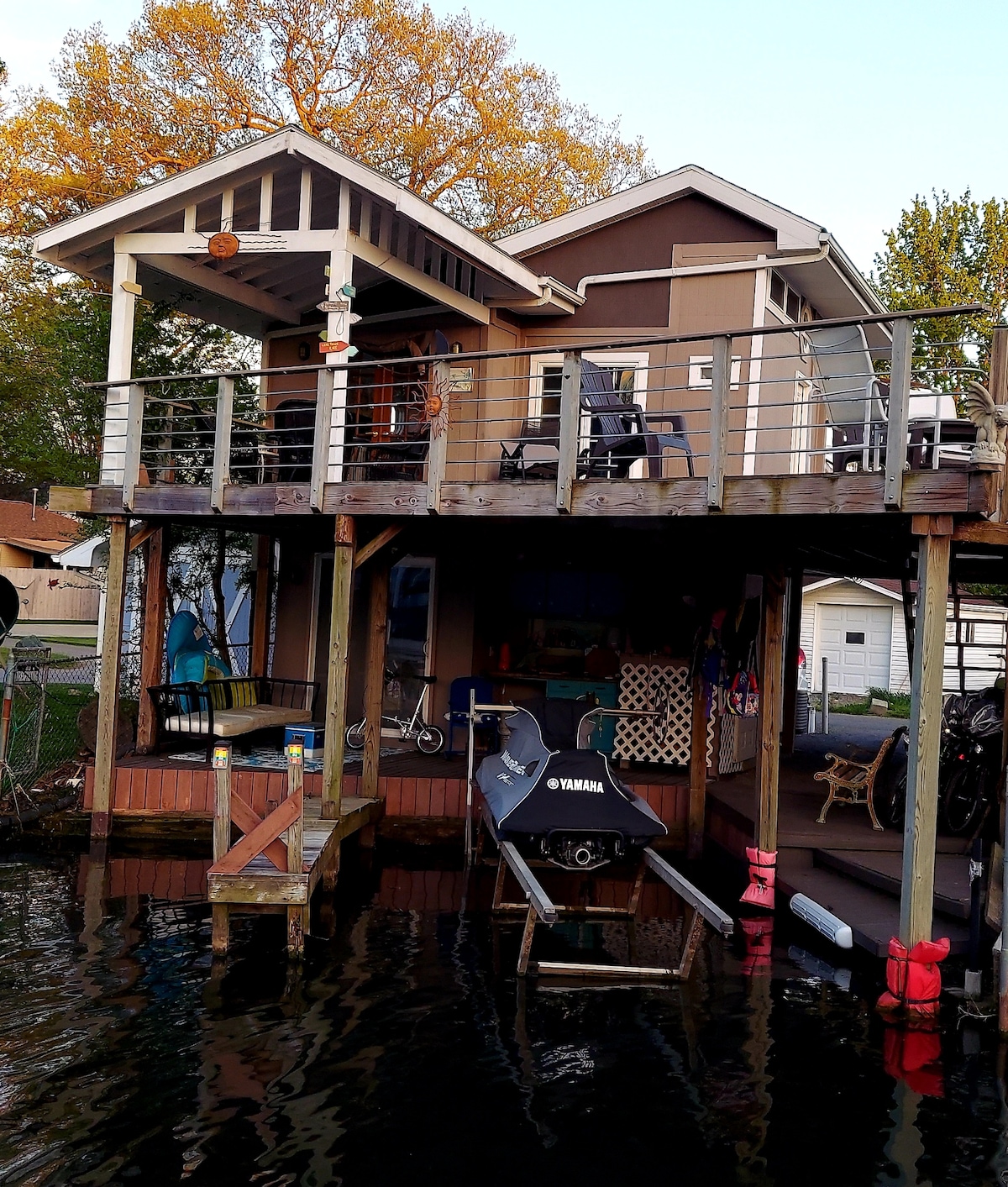 Nagyszerű ház az Indian Lake északi oldalán. Hal a teraszról a földszinten, és egy 800 négyzetméteres fedélzet a második emeleten. Televízió és antenna streamelése. 2 hálószoba 1,5 fürdőszoba és egy teljes konyha. Moose and Eagle klubok a közelben. EZ A HÁZ EGY KÚTBAN VAN, ÉS A VÍZNEK NÉHA KÉNSZAGA VAN. HA EZ ZAVAR, NE FOGLALJ. A kajakok és a kenuk rendben vannak. Nincs hely nagyobbnak. Hajórámpa 1 háztömbnyire a háztól. A járművekhez csatlakoztatott hajók egyik napról a másikra elhagyhatók. Sosem zsúfolt.