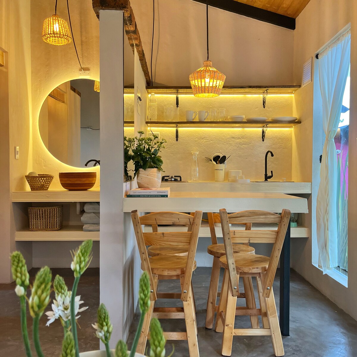 Descubre El Escondite: tu refugio ideal en Villa de Leyva A tan solo 7 kilómetros (unos 15 minutos) del centro histórico de Villa de Leyva, se encuentra El Escondite, una acogedora cabaña de piedra enclavada en medio del campo, donde la tranquilidad y la naturaleza son protagonistas. Su diseño combina la calidez de la arquitectura tradicional con un interior moderno tipo loft, amplio y luminoso. Cada rincón ha sido cuidadosamente decorado para brindar una experiencia confortable y acogedora.