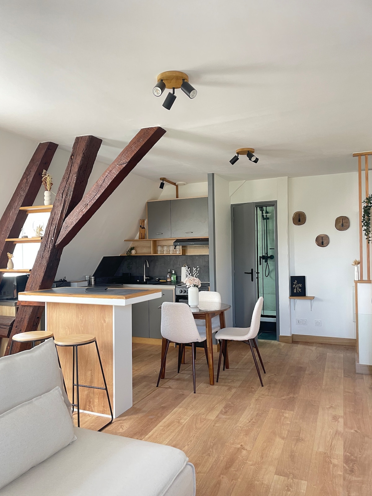 Üdvözlünk ebben a hangulatos és karakteres stúdióban, amely ideális helyen, a város szívében található. Az elegáns vidéki dekorációnak, a szabadon álló gerendáknak és a meleg világításnak köszönhetően egyedi hangulatot áraszt a felejthetetlen tartózkodáshoz. 🌿 Kifinomult és autentikus légkör Hangulatos 🛏️ ágy és átgondolt dekoráció 🌆 Lélegzetelállító kilátás a katedrálisra Üzletek, éttermek és történelmi helyszínek 📍 közelében Nagyszerű egy romantikus szálláshoz vagy egy egyedüli kiruccanáshoz. 📅 Foglalás most
