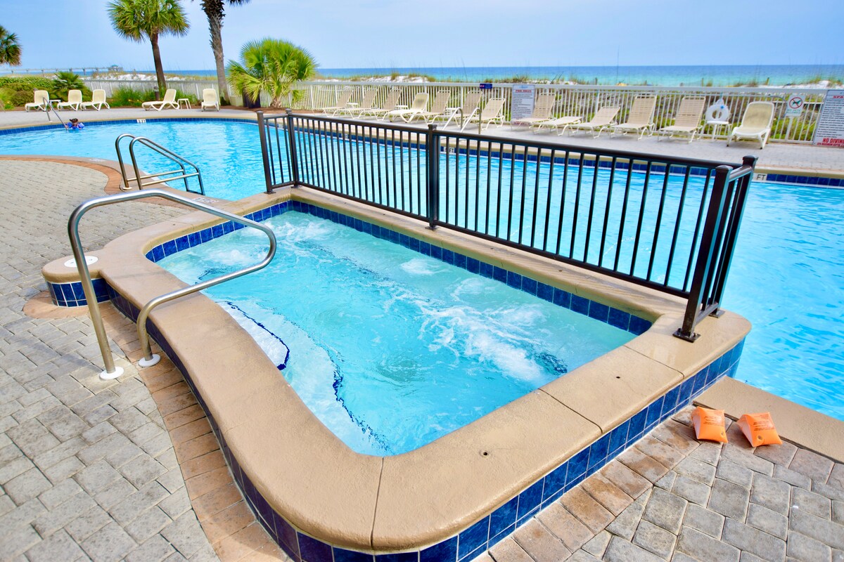 Teljesen felújított 8. emeleti lakás közvetlenül a tengerparton, akadálymentes kilátással az Öbölre és a strandra. A népszerű Pelican Beach Resort Destin szívében található szálláshelyen élvezheted a privát strandot, a több szabadtéri medencét, a fedett medencét, a hottubokat és még sok minden mást. Tengerparti lakásunkat professzionálisan felújították vadonatúj szekrényekkel, légkondicionálóval, padlóval, készülékekkel, bútorokkal, konyhával és sok minden mással. Minden matrac vadonatúj, hűvös gömb alakú memóriahab a hűvös éjszakai alváshoz. Teljesen egymásra rakott konyha.
