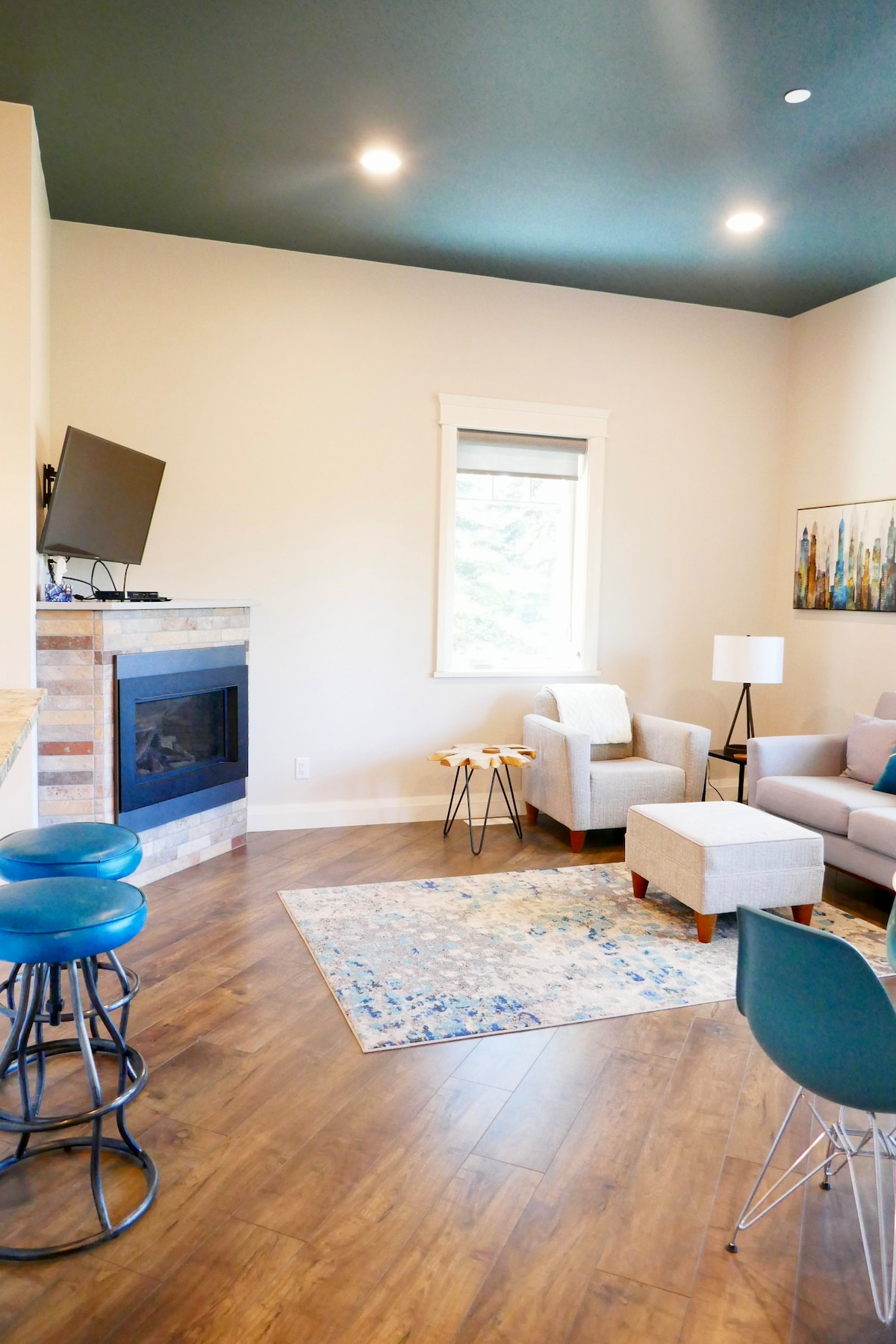 Clean. Quiet. Private. Watch the sunrise over the mountains each morning from the large deck of this brand new carriage house. A full kitchen with large island for convenient meal prep. Cozy living space with fireplace, blankets and Netflix when it comes time to chillax. Fabulous glass shower. Comfortable queen bed plus a pull out sofa. Walk to playgrounds. Safe and central rural location. Plenty of street parking. Garage parking available for smaller vehicles. (Access from inside).