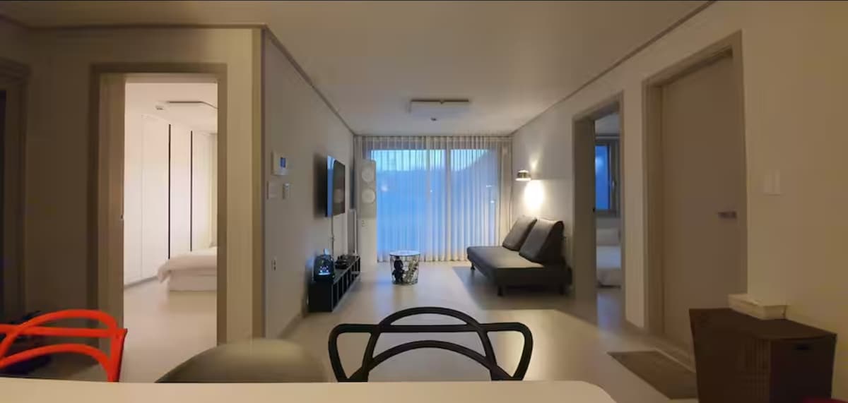 Családi lakosztály #Panoráma kilátás#Jukdo Beach szörfös óceán kilátás#Brücksi 50% kedvezmény# 2 szoba + 2 fürdőszoba #Hullámok hangja
