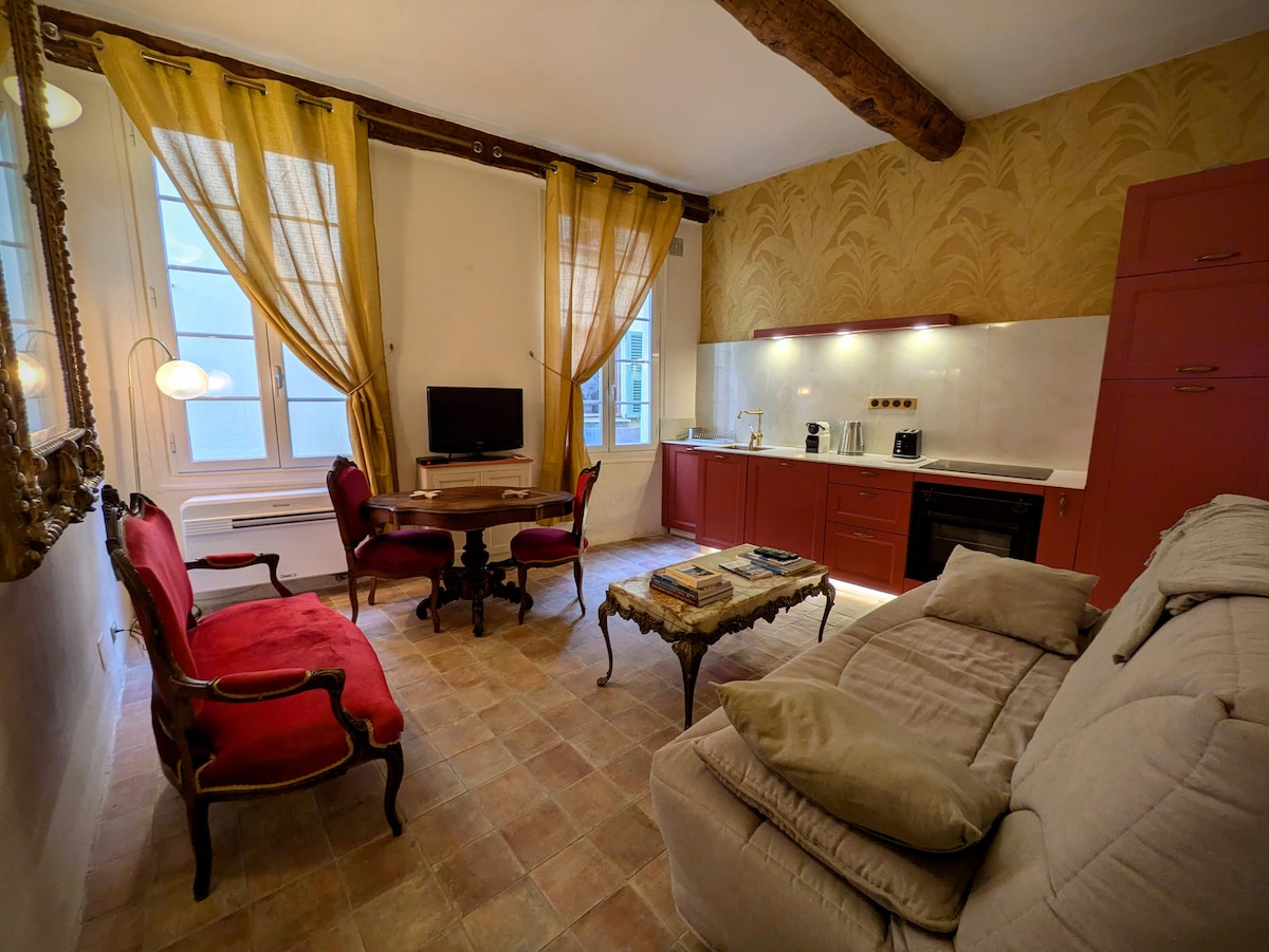 This 1 bedroom holiday apartment is ideally situated on the doorstep of the Main central square. It benefits from the calm of the prestige Carre D'Or area yet just 3 minutes walk from the buzz of the Old town, Promenade and beaches. The interior has stayed in keeping with a French style with a mix of modern and old. Decorated in a chic, elegant and warm style idea for both short or longer stays. Enjoy relaxed alfresco lifestyle on the quiet sunny balcony.