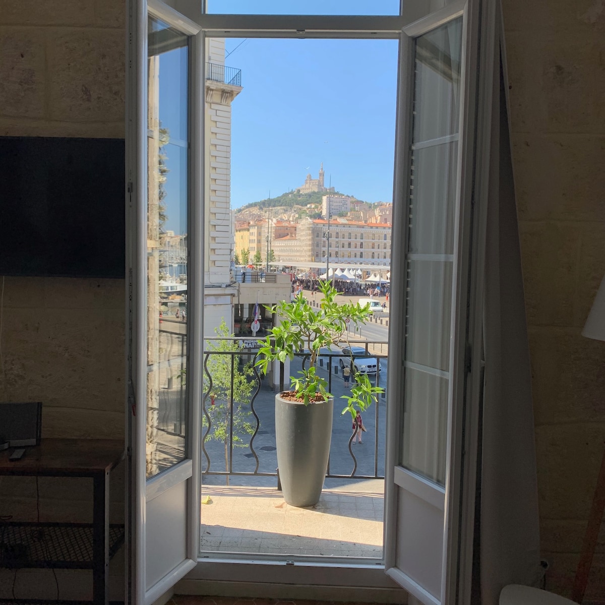 Ideal location! The apartment is on the Old Port. It has a wonderful view on the Port from the living room where you can see the sunset on the Port! The apartment is very confortable (678 ft2) for 2 people and 2 kids with 1 separated bedroom, A/C, internet The ferries to Calanques and to Frioul Island are just in front of the apartment. Very central it's the best location to visit Marseille: Vieux Port outside the door, subway, taxi buses, restaurants just in front ! I am Superhost for 12 years.