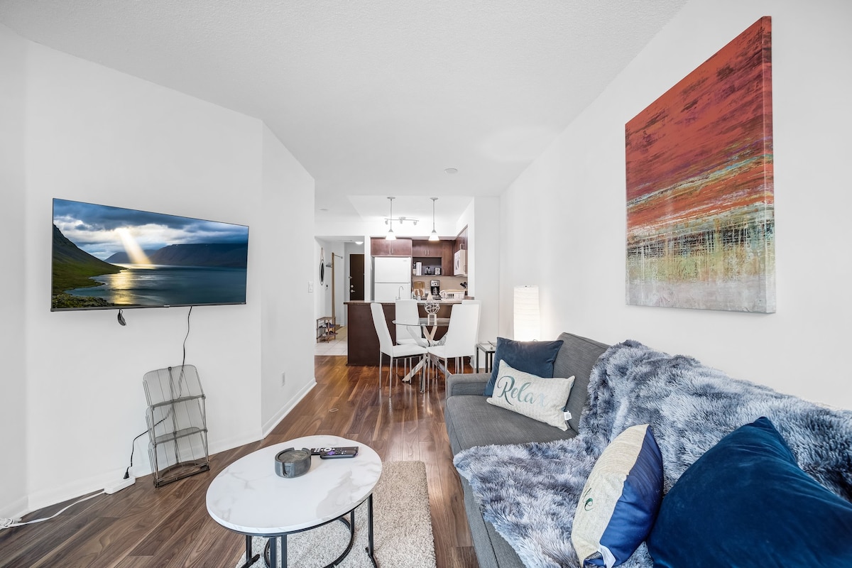 PLEASE SEND ME A MESSAGE FIRST BEFORE MAKING ANY BOOKING REQUESTS. Please note that gym is currently closed for renovation this month. Welcome to our modern 1+1 bedroom (den is open-concept but well secluded) 1 bath condo. Enjoy a stylish experience at this centrally located place! The suite is located right across CN Tower, Rogers Centre, Metro Convention, and Ripley's Aquarium. The prime location will help you maximize your stay to explore Toronto within walking distance.