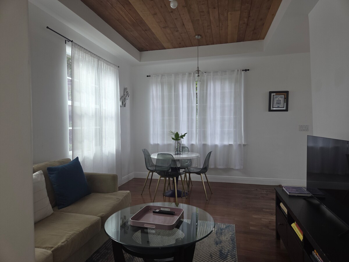 Dőlj hátra és lazíts a saját privát oázisodban 🌿 – 25 percre a Hard Rock Stadiumtól, és mindössze 5 percre Hollywood Beach-től! Élvezd a békés, stílusos pihenést saját bejárattal és hangulatos terasszal, amely tökéletes a reggeli kávéhoz vagy egy csendes estéhez. 🚲 Kerékpárral 10 perc alatt a strandon, vagy ugorj fel egy 2 dolláros transzferre, hogy felfedezd a belvárost és a partot. A vendéglakosztály queen méretű ággyal, minihűtővel, mikrohullámú sütővel, főzőlappal, kenyérpirítóval és kávéfőzővel rendelkezik – minden, amire szükséged van a kényelmes tartózkodáshoz.