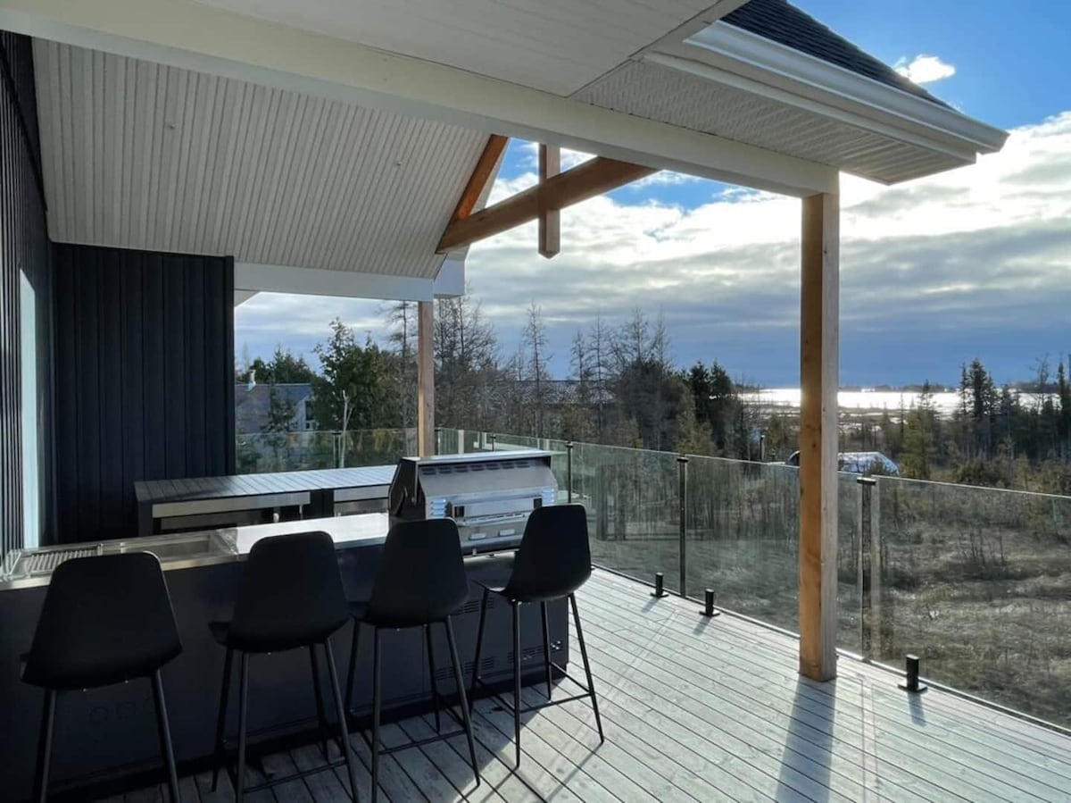 Üdvözlünk a Bayview Oasisban, a Georgian Bay-i luxuskivitelű tóparti házunkban. Élvezd a lélegzetelállító kilátást a vízre, a modern konyhát csúcskategóriás készülékekkel, a hangulatos pincét biliárdasztallal és bárral, valamint a mesterlakosztályt kiváló kényelmi szolgáltatásokkal. Pihenj a szabadban a kabinban pizzasütővel, kandallóval, piknikasztalokkal, tágas terasszal, pezsgőfürdővel és az új, egyedi uborkapályánkkal. Legyen szó romantikus kiruccanásról vagy családi nyaralásról, a Bayview Oasis tökéletes menedék.