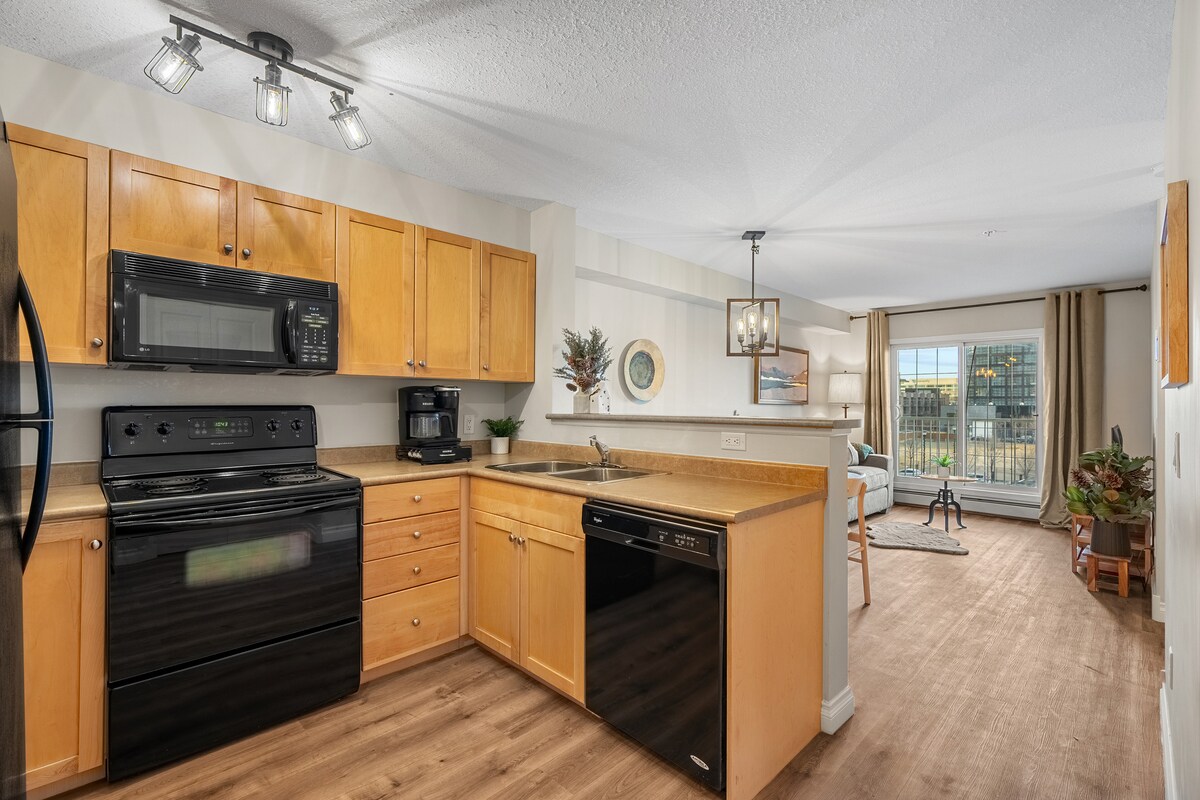 INGYENES mélygarázs. Élvezd a stílusos élményt ebben a központi elhelyezkedésű lakásban, amely a parkok, a vásárlás és az éttermek mellett található. Az East Village-ben, Calgary egyik legdivatosabb negyedében található, és biztosan a lehető legjobbat fogod megtapasztalni ez a város. Garantáljuk, hogy imádni fogod ezt a hangulatos otthont - távol az otthonodtól - modern elrendezéssel, padlótól a mennyezetig érő ablakokkal és világos belső térrel. Élvezd a Bow Riverre nyíló gyönyörű kilátást, valamint a könnyű hozzáférést Calgary C-Train belvárosához