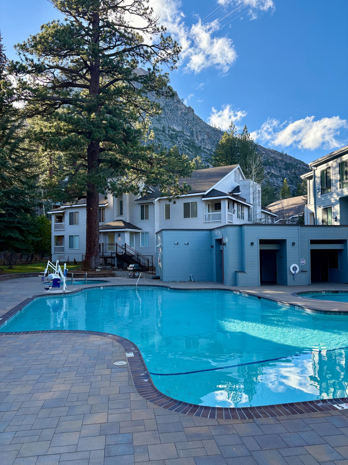 Szállj meg az Olympic Valley-ben, pár percre Palisades Tahoe-tól. Élvezd tágas, jól felszerelt, 2 hálószobás, 2 fürdőszobás társasházi lakásunkat csodálatos medencével, pezsgőfürdővel, szaunával és teniszpályákkal. Hagyd az autódat a garázsban, és élvezd az après-skit a Mountaineer alkalmazás használatával az Olimpiai Völgyben. Nyáron a Tart Connect alkalmazással juthatsz el Tahoe Citybe és azon túlra. A 7-11-es kisbolt és kerékpárkölcsönző közelében. Nagy sebességű Wi-Fi a munkához és a játékhoz. Babakocsi, járóka elérhető.