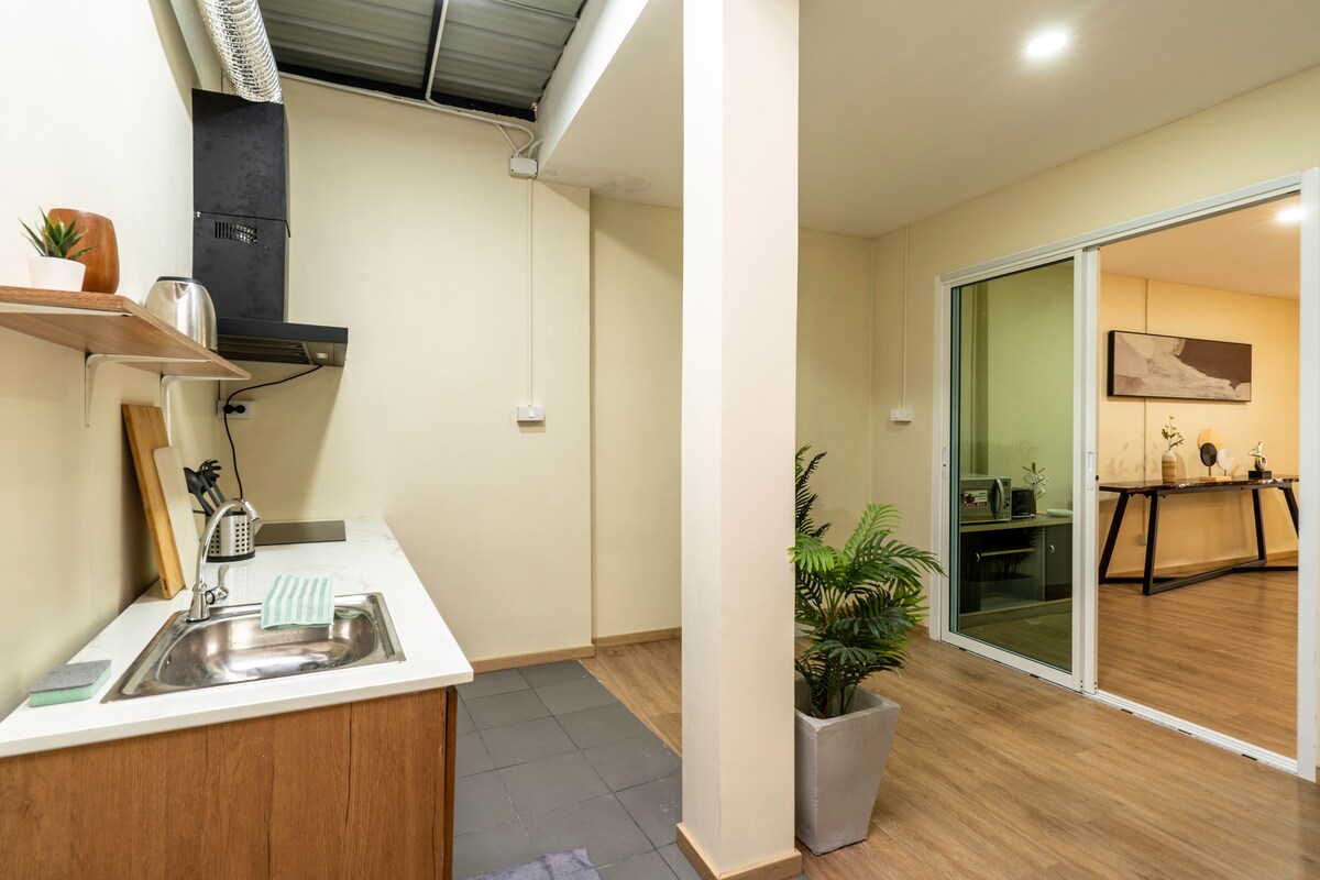A Zen Haus egy teljesen privát, kétszintes sorház, amely 115 négyzetméternyi kényelmes lakóteret kínál, így sokkal több hely áll rendelkezésre, mint egy tipikus bangkoki lakásban vagy szállodában. A 115 négyzetméteres lakótér ideális családok, hosszú távú foglalások, valamint az orvosi vizsgálatok vagy kezelések céljából Bangkokba látogató vendégek számára. Egy békés lakónegyedben található, mindössze 8 perces sétára a BTS Onnut megállótól, bevásárlóközpontoktól és éttermektől, ahonnan könnyen eljuthatsz Sukhumvitba, Bangkok belvárosába és a nagyobb kórházakba, miközben élvezheted a csendes pihenőhely előnyeit. .