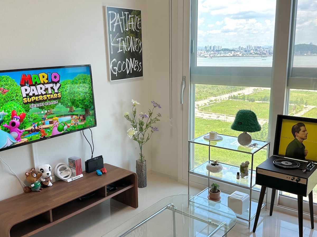 Az első emeleten egy Simmons különleges szállodai ágy és egy kétszemélyes ágy, a felső emeleten pedig két egyszemélyes ágy található. Tettem ide egy nagy kanapét, hogy kényelmesen aludj. LP- és CD-lejátszóval, DVD-lejátszóval stb. és Bluetooth-szal felszerelve Hangfalaink is vannak. Netflix stb. is elérhető. Yeongjongdo egy olyan hely, ahol reggel láthatod a Csendes-óceán napfelkeltét, napközben sétálhatsz a vasúti kerékpárral, és éjszaka láthatod a tengerre nyíló kilátást a 18. emeletről. Szállodai létesítményként ingyenes edzőterem, étterem, borbár és kisállatgondozó lapát is van. Ha egyszer belépsz ebbe a varázslatos és karakteres helybe, soha nem akarsz majd elmenni.