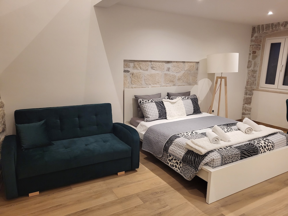 Studio C újonnan berendezett stúdió, a 2. emeleten a kőház. Minden bútor teljesen új, és biztosan élvezni fogja a kényelmet ez a stúdió ad. Van franciaágy, konyha (tűzhely, mosogató, hűtőszekrény és étkező garnitúra), erkély kilátással a tengerre, saját fürdőszoba, légkondicionáló, TV, Wi-Fi.