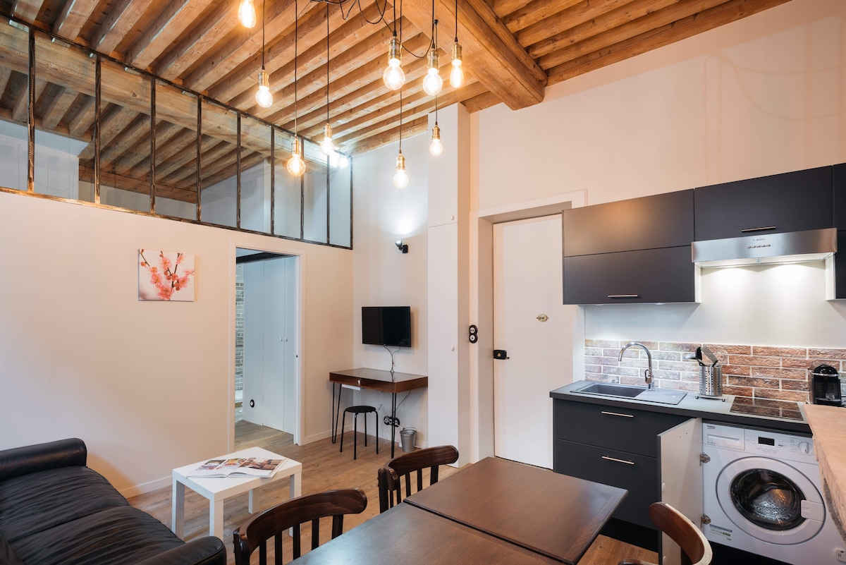 Szokatlan és hangulatos stúdió terasszal Lyon központjában, az 1. kerületben. Minden szolgáltatás közelében.