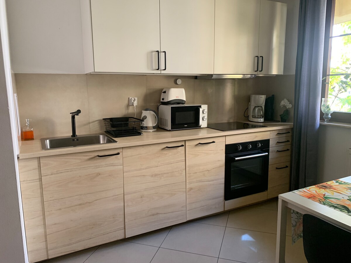 4-person apartment on Garbary Street in the very center of Wrocław. The apartment features a king-size bed, a living room with a double sofa bed, and a well-equipped kitchenette with an induction cooktop. Guests also have access to the necessary utensils for meal preparation. The bathroom is equipped with a shower or bathtub, hand soap, and towels. Additionally, the apartment includes a flat-screen TV and free Wi-Fi internet access.