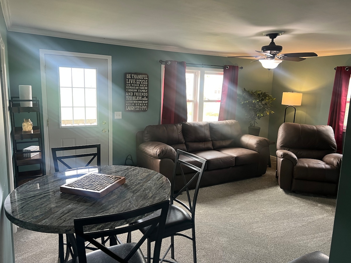 Csatlakozz újra szeretteiddel ezen a családbarát helyen. Élvezd a kényelmes nappalit, vagy dőlj hátra a fedélzeten, kilátással a Mississippi folyóra. Van egy furcsa veranda is. Sétatávolság a helyi bártól és grilltől. Csendes, biztonságos környék. A konyhában az otthon minden kényelmi szolgáltatása megtalálható. A mosógép és a szárítógép a fürdőszoba egyik végén található. Csak egy telefonhívásnyira vagyunk, ha szükséged lenne valamire. Nem számít, hogy a családodat látogatod meg, vagy itt dolgozol, reméljük, hogy jól érzed magad itt.