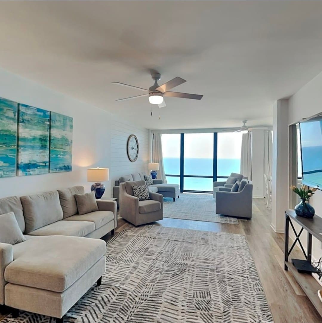 Experience coastal luxury in this 3BR/3BA beachfront corner condo in Orange Beach, AL. Enjoy panoramic 180° Gulf views, abundant natural light, and an open floor plan perfect for relaxing or entertaining. Features include a fully stocked kitchen, Smart TVs with fast Wi-Fi, a private balcony with outdoor dining, and a fully stocked beach closet. Steps from sugar-white sand—ideal for a memorable beach getaway.