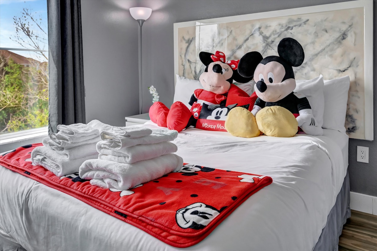 2B/2B Disney Resort Condo a Floridaysben, mindössze 10 percre a Disney vidámparkoktól és 10 percre a Universal Stúdióktól! Az Orlando Outlets mindössze 4 percre van, és rengeteg étterem és bár található egy rövid autóútra/uberre. A lakásunkban rengeteg pénzt SPÓROLHATSZ! NINCS üdülőhelyi díj, INGYENES parkolás, INGYENES reggeli (lásd a lehetőségeket), INGYENES wifi és még sok minden más! Élvezd a 2 FŰTÖTT MEDENCÉT, a 2 PEZSGŐFÜRDŐT, a teljes játéktermet, a teljes edzőtermet, a helyszíni kényelmi központot, valamint a bárt és grillt. CSALÁDBARÁTOK vagyunk! A lakásunkhoz jár egy babakocsi!