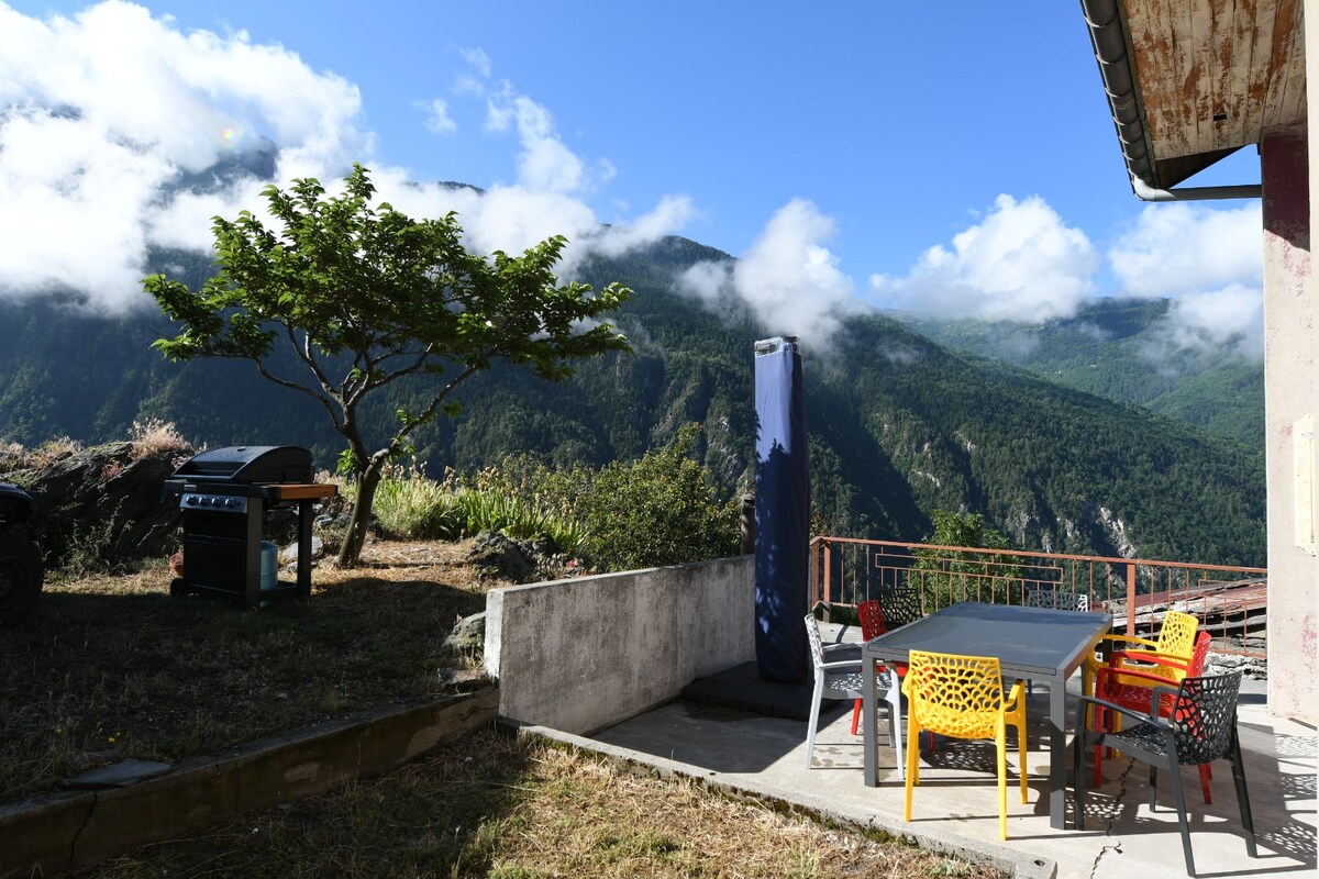 In a small typical mountain village (near ski resorts and at the foot of the Vanoise National Park), cottage of character in wood, and local stone, renovated and very spacious (250 m² with 1000 m² of garden). Accommodating up to 15 people. The house is facing south with impregnable view on the valley and the mountainous massifs. Enjoy the sauna after a day of skiing or hiking, then don't forget billiards and table football. Perfect for families and friends group!