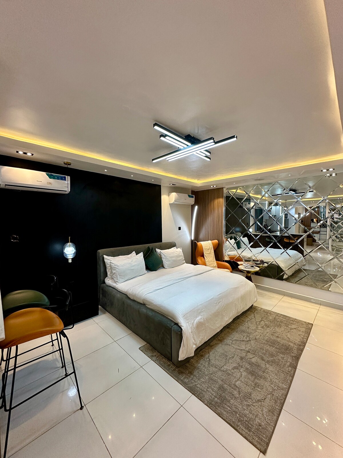 Élvezd a luxust ebben a tágas, stílusos, 2 hálószobás lakásban, amely medencével, edzőteremmel, Starlink Wi-Fi-vel, PS5-tel és gyönyörűen megtervezett belső terekkel rendelkezik. Az épületben éjjel-nappal biztosított az áramellátás, és van egy helyszíni konyha, ahol frissen elkészített ételeket rendelhetsz, amelyeket közvetlenül az ajtódhoz szállítanak. Tökéletes pároknak, családoknak, üzleti utazóknak vagy baráti csoportoknak, akik kényelmet és kifinomultságot keresnek Lekki Phase 1 szívében.