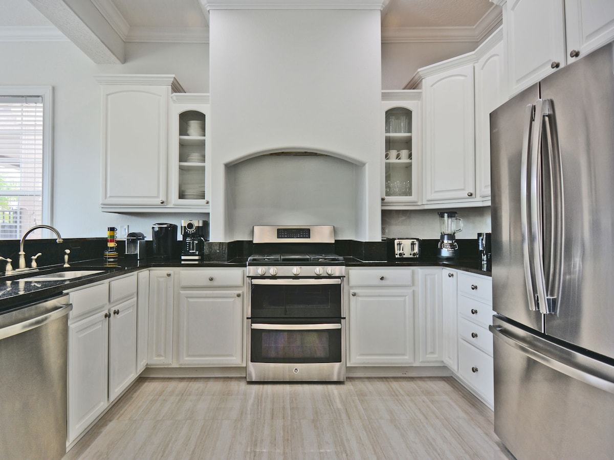 Stylish villa 4 bed/3 bath family home with private facing pool & SPA, living room, family room, kitchen, breakfast bar, dining table, a game room, Wi-Fi, smart TVs, wheelchair accessible, close to the parks, shops, and restaurants, Pool & SPA heater at additional cost, located at Glenbrook community. We have it all and much more to enjoy. The pool & SPA heater fee is $25 (USD) per day. The BBQ grill is an additional $45 (USD) charge for the whole stay, including 1 propane gas and cleaning.