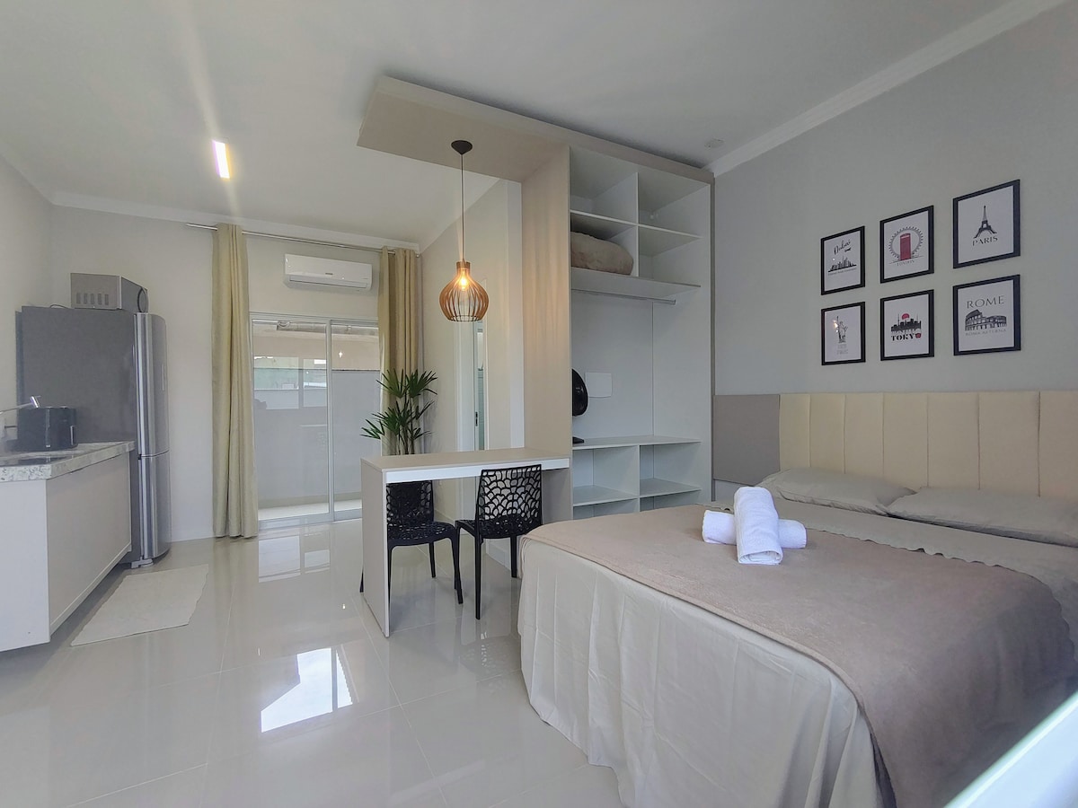 Pihenj ezen az egyedi és csendes helyen. Vadonatúj stúdió, amely 10 percre található Florianópolis belvárosától, az Estreito egyik legjobb régiójában, részleges kilátással a kontinentális vízpartra, könnyű hozzáféréssel a strandokhoz, a repülőtérhez és a szárazföldhöz. A nagyszerű elhelyezkedés számos kényelmi szolgáltatást kínál, amelyek megkönnyítik a mindennapi életedet. A kiadó hely nagysebességű Wi-Fi-vel, 55hüvelykes okostévével, Netflix-szel, YouTube-szal és Spotify-szal, valamint teljes konyhával rendelkezik.
