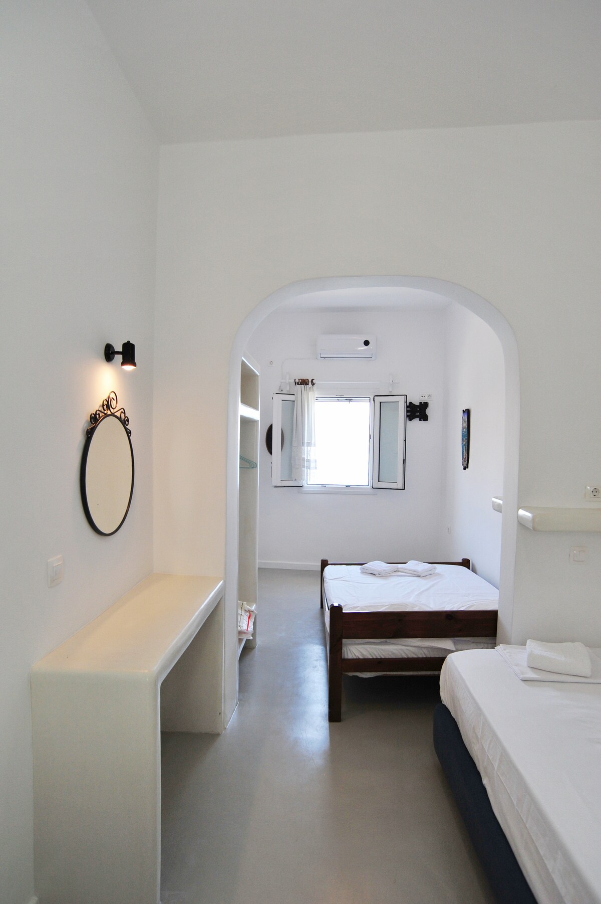 A gyönyörű Amorgos szigetén és a legfestőibb kikötőben, Aegialiban vagyunk! Lakásunk 5 perc sétára található a tengertől, amely Aegiali központi strandja kristálytiszta vízzel és aranyszínű homokkal. A rezidencia egy magántulajdonban lévő területen található, saját parkolóval, nem messze a falutól, ahol hagyományos tavernák, kávézók, szupermarketek, bárok és a központi buszpályaudvar található, amely összeköti Aegialit az összes többi faluval.