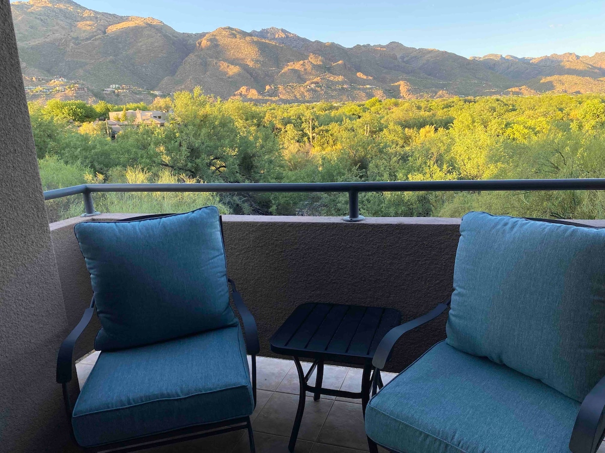 Rancho Vistoso teraszunk egy zöldövezetre néz, amely vadvilági menedékké vált. A teraszon az Amazing Mountain és a Desert Sunset kilátás nyílik az étkezésre és a pihenésre. A Vistoso Casitas üdülőhelyhez hasonló kényelmi szolgáltatások közé tartozik hat mérföldnyi aszfaltozott ösvény, egy fűtött közösségi medence/gyógyfürdő, Ramada grillezővel, edzőterem és klubház. Órákat töltöttünk az Oro-völgy számos mérföldnyi biztonságos és festői kerékpáros útvonalán, valamint a közeli Catalina State Parkban található, kihívást jelentő hegyi ösvényeken.