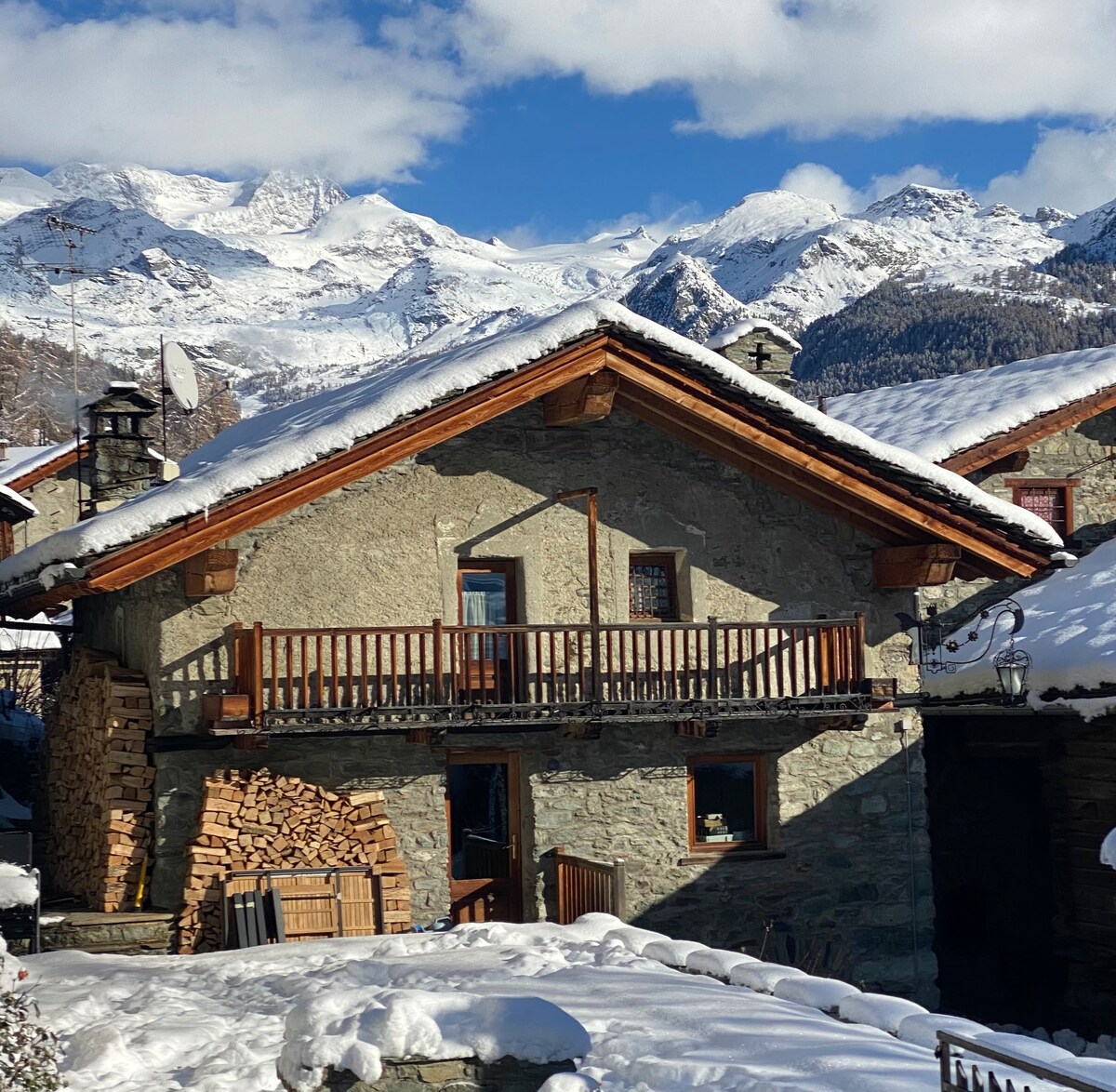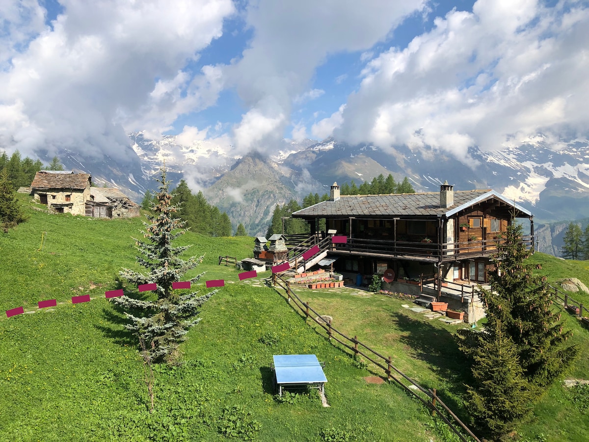 Chalet tipico valdostano,recente ristrutturaz indipendente posizionato a1000mt.di alt.in zona silenziosa, disposto su2piani,caratterizzato da travi a vista,pietra rustica e arredato in stile montano. Posto auto e zona verde relax con vista sul monte Bieteron mt.2764,a due passi dal centro storico, a 8minuti da Brusson,17minuti dalle piste da sci di Palasinaz,20 minuti da Champoluc e20minuti dalle piste da sci di Antagnod.Collaboriamo con attività extra sul territorio.Siamo pronti ad accogliervi!