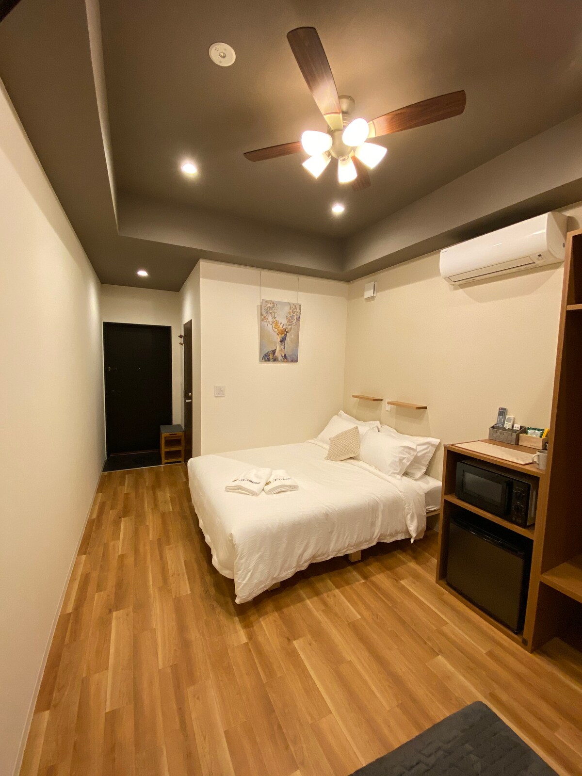 Újonnan épült, az utazók szem előtt tartásával. A szobák tágasak, queen méretű ágyakkal (gyakorlatilag ismeretlenek Japánban). Okostévé, Wi-Fi, tea és kávé. A fürdőszobák divatosak, nagy sétával az esőzuhanyban. LED-TÜKRÖK, amelyek felkészítenek bármilyen világításra, amivel találkozhatsz. A szobák bárhűtővel, mikrohullámú sütővel és vízforralóval rendelkeznek a készételek és italok tárolásához és elkészítéséhez. Minden szoba légkondicionálóval, mennyezeti ventilátorokkal és sötétítőfüggönyökkel van felszerelve. Bőséges tárolóhely is!