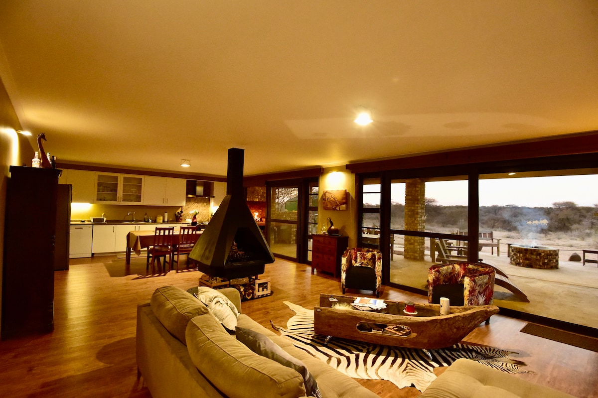 Érezd jól magad az egész családdal ezen a stílusos helyen. Gyönyörű, modern, önellátó 5 hálószobás és három fürdőszobás parasztház. Tágas nappali és étkező, modern konyha és emeleti braai terület. Ideális csoportoknak vagy egynél több családnak 12 km-re a Windhoek felé vezető főúttól, 17 km-re a Gobabisztól, 112 km-re a Buitepos határátlótól. Ideális megálló Namíbia főbb látnivalóihoz.
