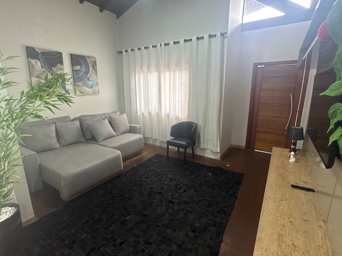 Pihenj stílusosan Ourinhosban! Szállj meg egy otthonos és teljes otthonban, privát szabadidős területtel és integrált környezettel, amely tökéletes azoknak a családoknak, pároknak vagy barátoknak, akik kényelmet és praktikusságot keresnek. Mindössze 5 percre a belvárostól, egy csendes környéken, közel a piacokhoz, éttermekhez és a zöld ösvényhez, ideális szabadtéri túrázáshoz