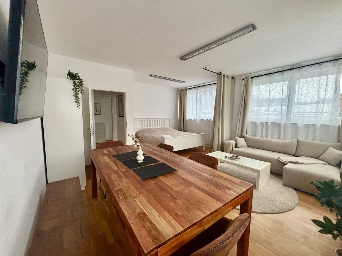Kürten szívében, egy csendes mellékutcában találod a jóllét kis oázisát, amelyet közvetlenül a természetvédelmi és túrázási területek vesznek körül. A padlófűtéssel vagy -hűtéssel és szellőztető rendszerrel felszerelt, 20 négyzetméteres lakás teljes értékű nappalival és teljesen felszerelt konyhával, mosogatógéppel felszerelt zuhanyzóval és alvóhellyel rendelkezik, amely nemcsak helyiségelválasztóként működik, hanem tárolást is kínál a ruháid számára.