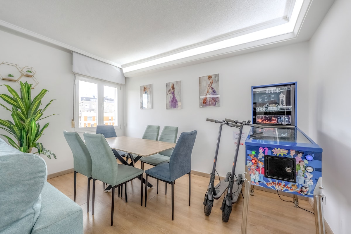 Tágas és világos, felújított, két hálószobás lakás Oviedo belvárosában, 15 percre Calle Uríától. Minden kényelmi szolgáltatás kéznél van: turisztikai területek, szupermarketek, kávézók és éttermek. Ez a hangulatos lakás mindennel rendelkezik, amire szükséged lehet, ha családdal vagy üzleti ügyben utazol, beleértve a privát Netflix-fiókot is.