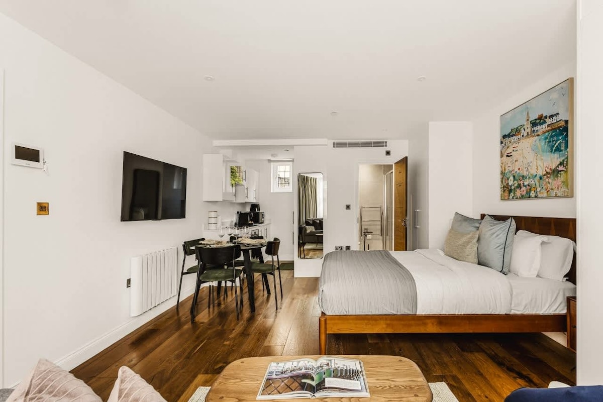 Üdvözlünk a modern londoni szállásodon! Ez a vadonatúj stúdió a kényelem és a városi stílus ötvözete Ealing szívében. Tiszta és funkcionális kialakításának köszönhetően ideális egyedül utazók, párok vagy kis csoportok számára, és a kényelmes kanapéágynak köszönhetően akár három vendég is elfér benne. Tökéletes a pihenéshez egy városnézéssel töltött nap után, távolról dolgozáshoz, vagy egy laza kiruccanáshoz, ahol minden kéznél van.