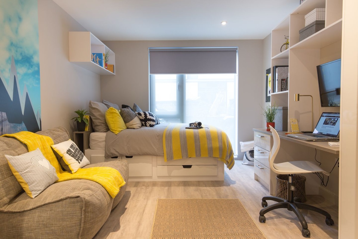 Ezek a díjnyertes, saját fürdőszobás lakások tökéletes választást jelentenek a glasgow-i tartózkodásodhoz. Élvezd a modern kialakítású szálláshelyet, ahol saját, teljesen felszerelt konyhádban főzhetsz, és a társalgóban pihenhetsz. Ebben a stúdióban van egy kétszemélyes ágy, egy okostévé, egy külön dolgozóhely és rengeteg tárolóhely. Felhívjuk a figyelmedet, hogy ez a szálláshely csak diákoknak érhető el.