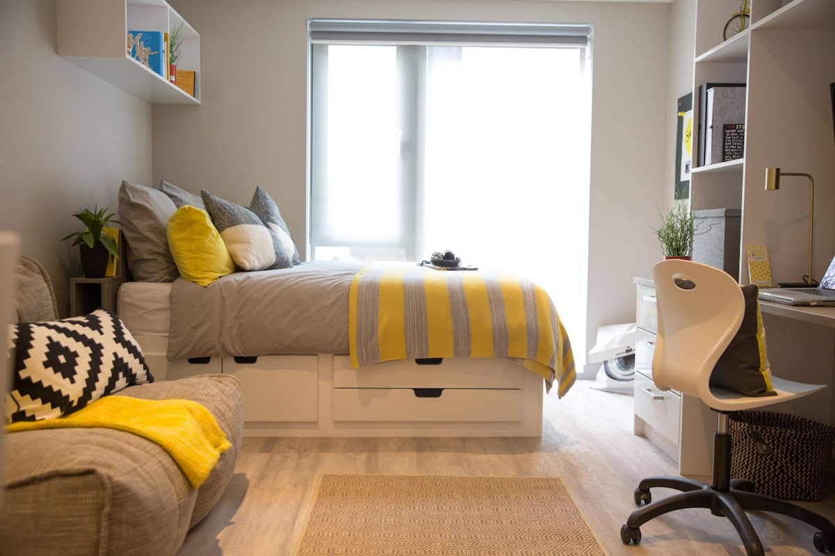 Élvezd a diákélethez tervezett saját fürdőszobás szobát Glasgow központjában, mindössze egy rövid sétára az egyetemektől és a közlekedési csomópontoktól. A kiadó helyed tartalmaz egy saját fürdőszobát, ágyat és dolgozóterületet, valamint hozzáférést biztosít a modern társalgókhoz és egy teljesen felszerelt edzőteremhez. Ideális azoknak a diákoknak, akik élénk és összekapcsolt városi élményt keresnek nagyszerű kényelmi szolgáltatásokkal és közösségi hangulattal.