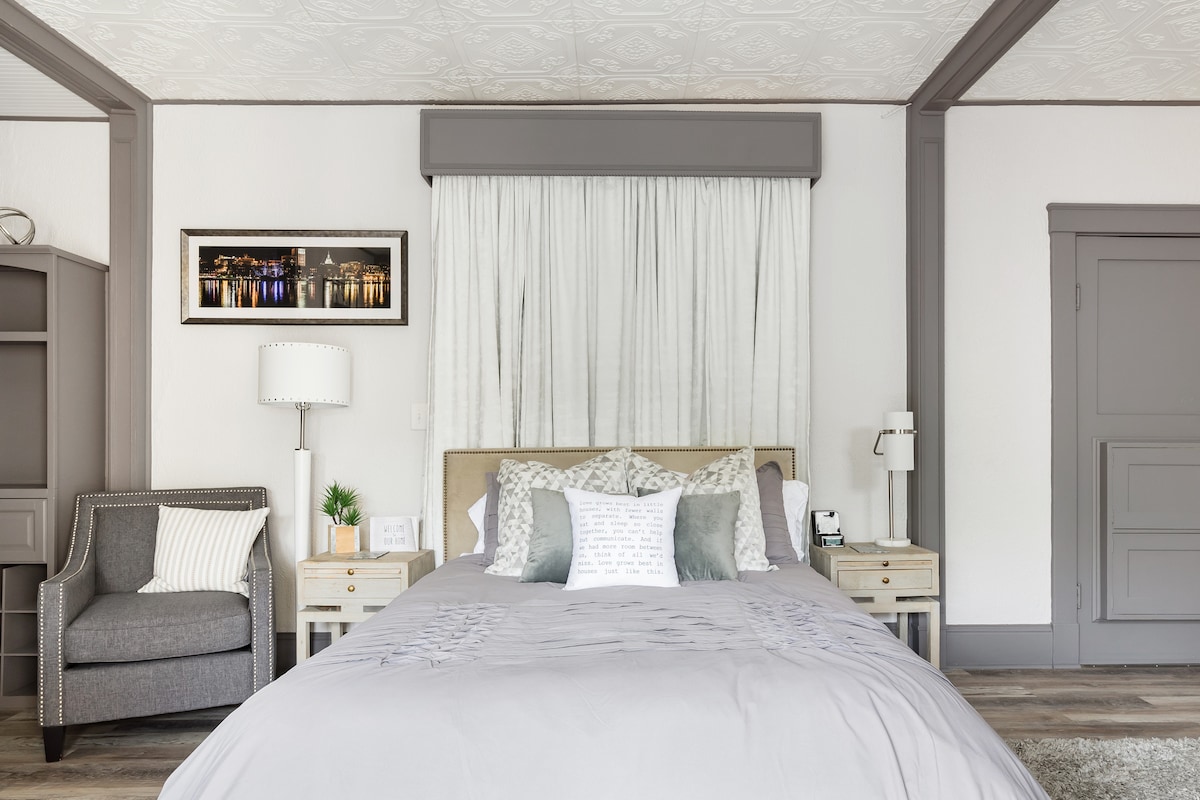 A @TheParlorLoft a szeszélyes kiruccanásod Savannah történelmi negyedében. Az 1885-ben Matthew Lufburrow által épült és egykor Dr. Benjamin S. Purse otthonaként szolgáló bájos, nyitott loft a vintage karaktert a modern kényelemmel ötvözi. Sétálj el a Pulaski Square-re, a Forsyth Parkba, a River Streetre és a City Marketre, vagy élvezd a közelben található kedvenceket, mint a Franklin's Coffee, a Six Pence Pub, a The Public Kitchen & Bar és a Mrs. Wilkes' Dining Room. Tökéletes romantikus kiruccanás vagy egyedül töltött idő Savannah szívében. #02507