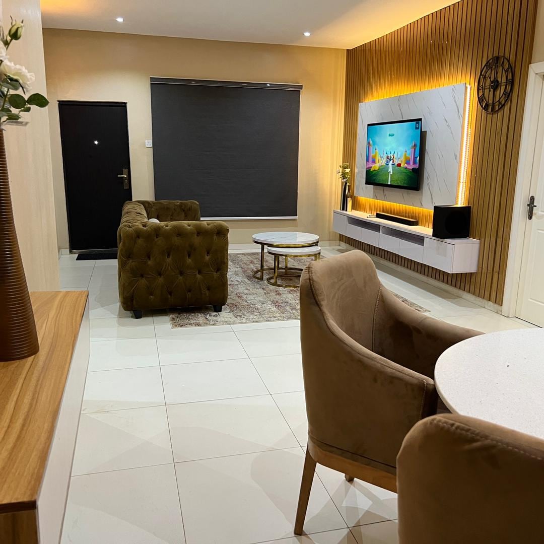 D'EXQUISITE APARTMENTS, newly built property with state of the art luxury amenities in a serene, peaceful, family friendly and unique environment close to attractions , malls, lounges/bar e.t.c . 24/7 Electricity, Free internet/WIFI, free parking and spacious compound that can be utilised for party/ gathering. The whole group will be comfortable in this spacious and unique space with 24/7 security personnel and supporting staff onsite for free cleaning services.