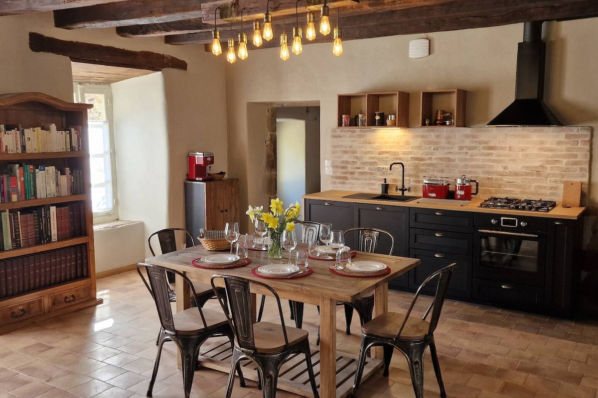 A Grange, amely néhány évtizeddel arrébb fehér kövekből és fakeretből készült. Egy mezőgazdasági ingatlan központjában teljesen felújították. A ház egy szinten található, megőrizve a múlt báját. Egy nagy nappali teljesen felszerelt konyhával, nagy étkezőasztallal és ülősarokkal várja a megosztást. A vendégek élvezhetik a teraszt kerti bútorokkal és grillezővel. Privát tó horgászáshoz vagy pihentető pillanatokhoz. A medencét megosztjuk velünk, tulajdonosokkal.