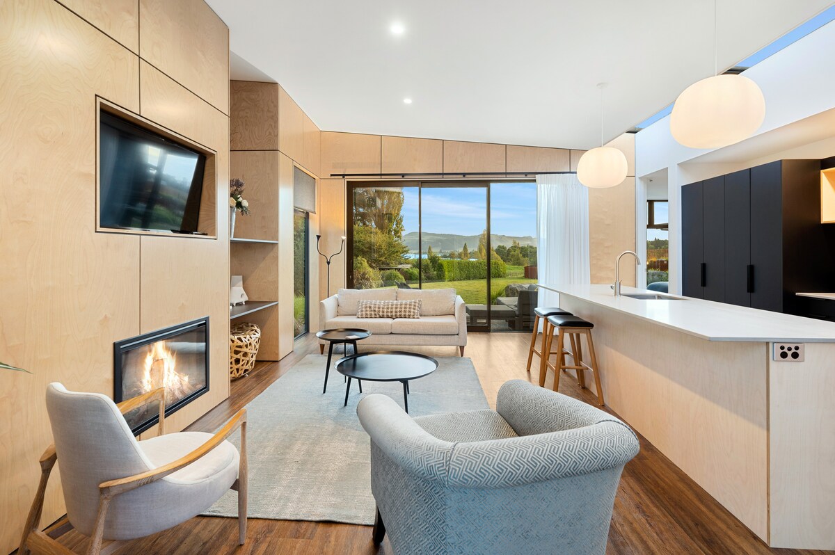 Egy hely, ahol könnyedén lélegezhetsz, lazíthatsz, és stílusos kényelmet élvezhetsz, kilátással a Rotorua-tóra és a dombokra. Ez a modern, két hálószobás, fürdőszobás villa, amely a sziklák, az őshonos bozótos és a modern művészet között fészkel, a négy különálló, legfeljebb 4 vendégnek megfelelő szomszédos villa egyike. Fedezd fel a privát strandot (3 másik villával megosztva), grillezz a barátaiddal, vagy áztasd magad a cédrus pezsgőfürdőben a csillagok alatt (a pezsgőfürdőt három másik villával osztjuk meg). Menekülj együtt Toka Ridge-be.