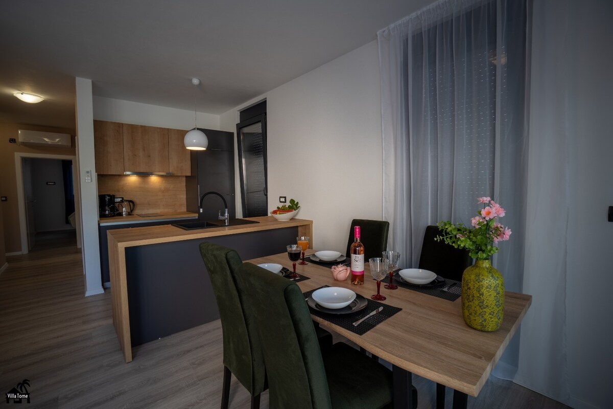 Új és teljesen felszerelt luxuslakás, amely akár 8 fő elszállásolására is alkalmas. A duplex lakás ágyneművel, dekorációval és egyéb részletekkel van berendezve. Ingyenes Wi-Fi-vel, légkondicionálóval, parkolóval és gyönyörű medencével rendelkezik. Az apartman a strand közelében található, nem messze a városközponttól. Gyere és élvezd a nyaralást.