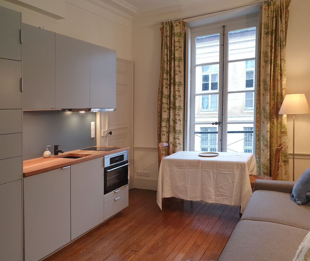 Szállj meg a lakásomban. 40m2 (430 négyzetláb) a városközpontban, egy csendes udvarra néző kilátással. Gyönyörű, világos és meleg hely. Hálószoba franciaággyal (lepedők és törülközők Bonsoirs-tól), nagy felszerelt konyhával és nyitott nappalival. Központi elhelyezkedésű, pár lépésre a Versailles-i kastélytól. Tökéletes hely a kalandok közötti újragondoláshoz. Lépj ki, és keresd meg a város legjobb, független tulajdonú üzleteit, éttermeit és bárjait. Ajánlásra van szükséged? Csak kérdezd meg, imádom megosztani!